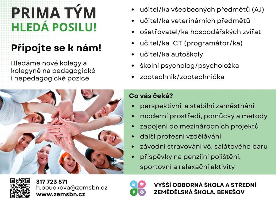 U nás najdete přátelské prostředí, profesní růst, možnost zapojit se do mezinárodních projektů a zahraničních stáží i příležitost pomáhat studentům uspět.