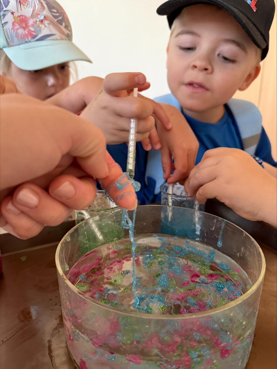 namíchaly si svoje vlastní barvy a vytvořily malá umělecká díla,