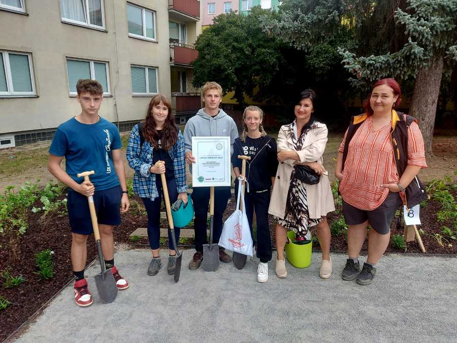 Lucie, Kateřina, Jakub, Václav a ještě jednou Jakub - to jsou jména studentů, kteří letos hájili naši školu v této tradiční soutěží organizované Svazem pro zakládání a údržbu zeleně, ve které nejde jen o to zvítězit, ale také přinést novou, příjemnou zelenou oázu do měst a obcí. A to se na prostranství sousedícím s restaurací u Černého koně, koupalištěm Bioskou a zadním vchodem do naší školy určitě povedlo.