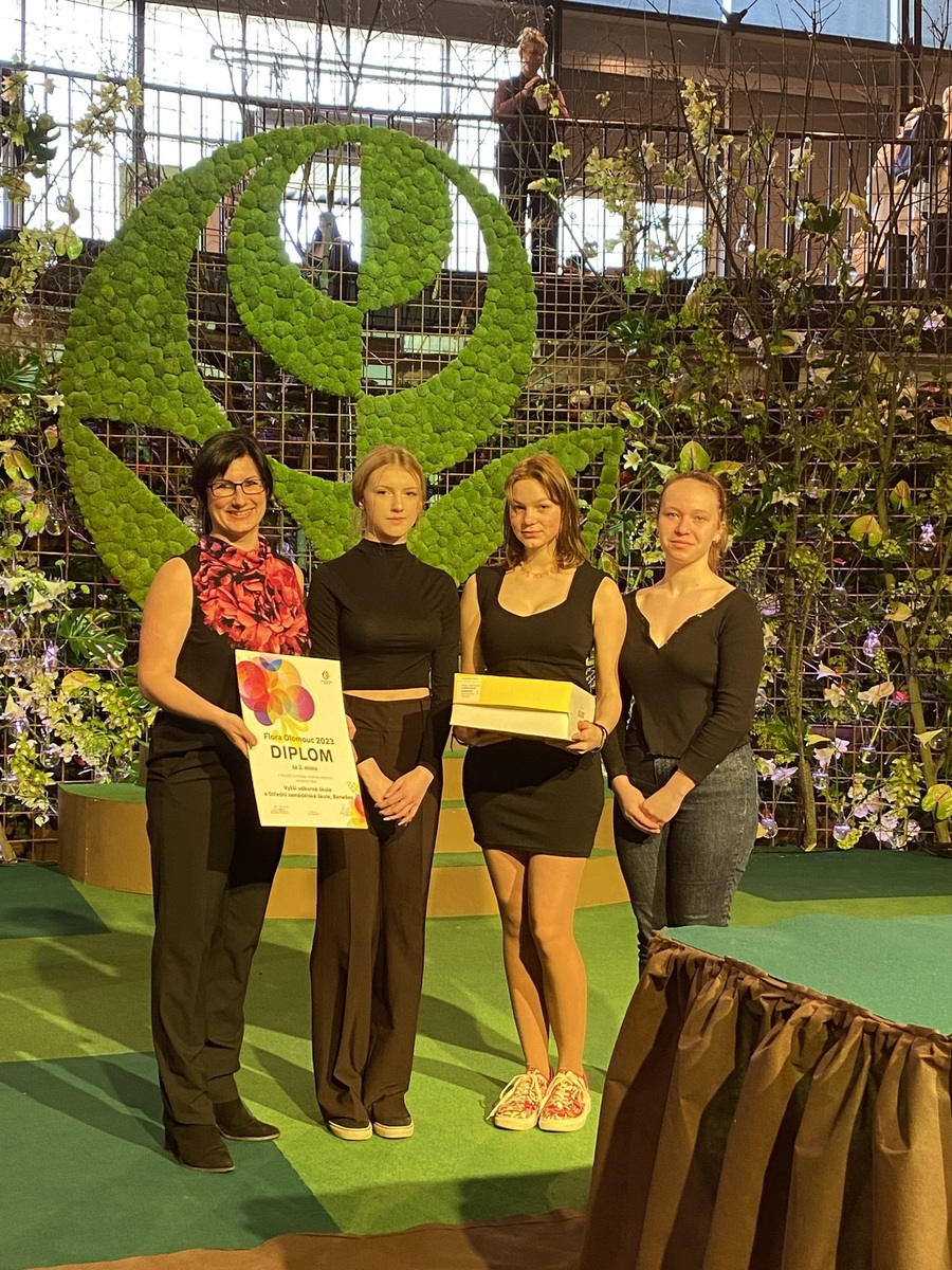 Cena nám byla udělena odbornou porotou za naší expozici ukazující, jak je možné přinést KRÁLOVSTVÍ BAREV (ústřední téma hlavní výstavní plochy) do našeho každodenního života, i když žijeme třeba v městském bytě. Na ploše 3 x 3 metry vytvořili naši zahradníci pod vedením paní učitelky Veroniky Zikmundové oázu klidu a pohody. Důkazem, že se jim to podařilo, je nejen cena odborné poroty, ale také velká oblíbenost našeho stánku mezi návštěvníky. Ti rádi na chvilku usedli do zahradních křesílek nebo na sedací vak a užili si odpočinek na rozkvetlém "balkóně".