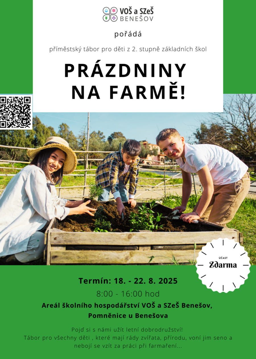 Prázdniny na farmě: Pojď si s námi užít letní dobrodružství! Tento tábor je určen pro všechny děti, které mají rády zvířata, přírodu, voní jim seno a nebojí se vzít za práci při farmaření. Čekají tě dny plné péče o zvířata, práce na farmě a objevování krás venkova.