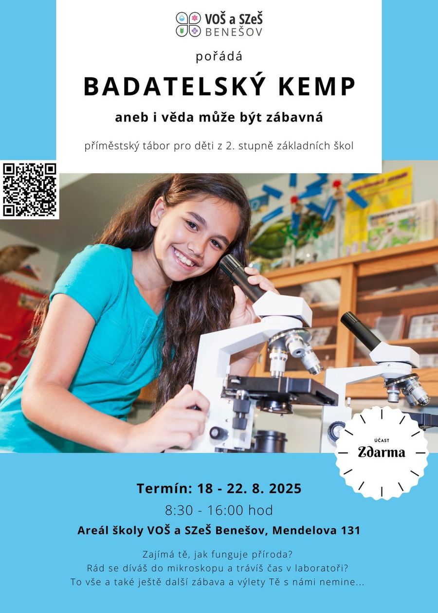 Badatelský kemp: Zajímá tě, jak funguje příroda? Rád se díváš do mikroskopu a trávíš čas v laboratoři? Tento tábor je pro tebe ideální! Budeš mít možnost zkoumat přírodní jevy, provádět experimenty a účastnit se zajímavých výletů.