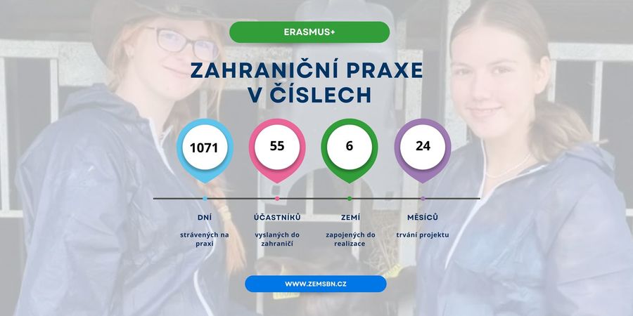 Od 1. června 2022 do 31. května 2024 u nás probíhal projekt „Green practice and education without borders“ v rámci programu Erasmus+. Přinesl našim studentům a učitelům spoustu úžasných zážitků a nových dovedností. Díky grantu ve výši 116 848,00 EUR mohlo do zahraničí vycestovat 46 studentů a 9 učitelů na stáže trvající od jednoho týdne do 20 týdnů. Nejvíce našich studentů se podívalo do Dánska a na Slovensko, kde se účastnili odborných soutěží a získávali cenné zkušenosti v oboru.