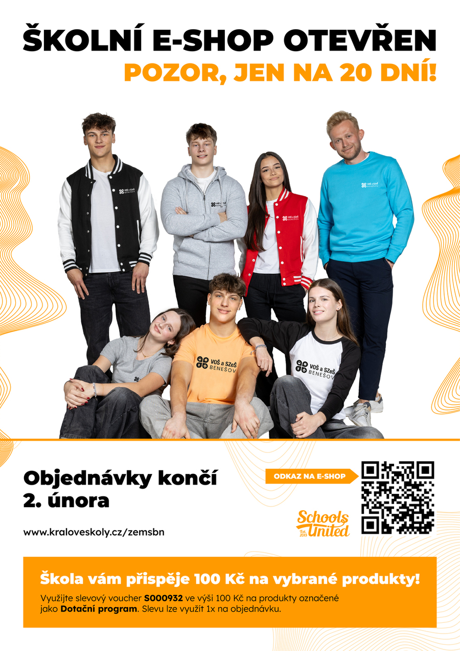 Naše škola má vlastní volnočasovou kolekci oblečení plnou mikin, triček, batohů, čepic a dalších kousků se školním logem.