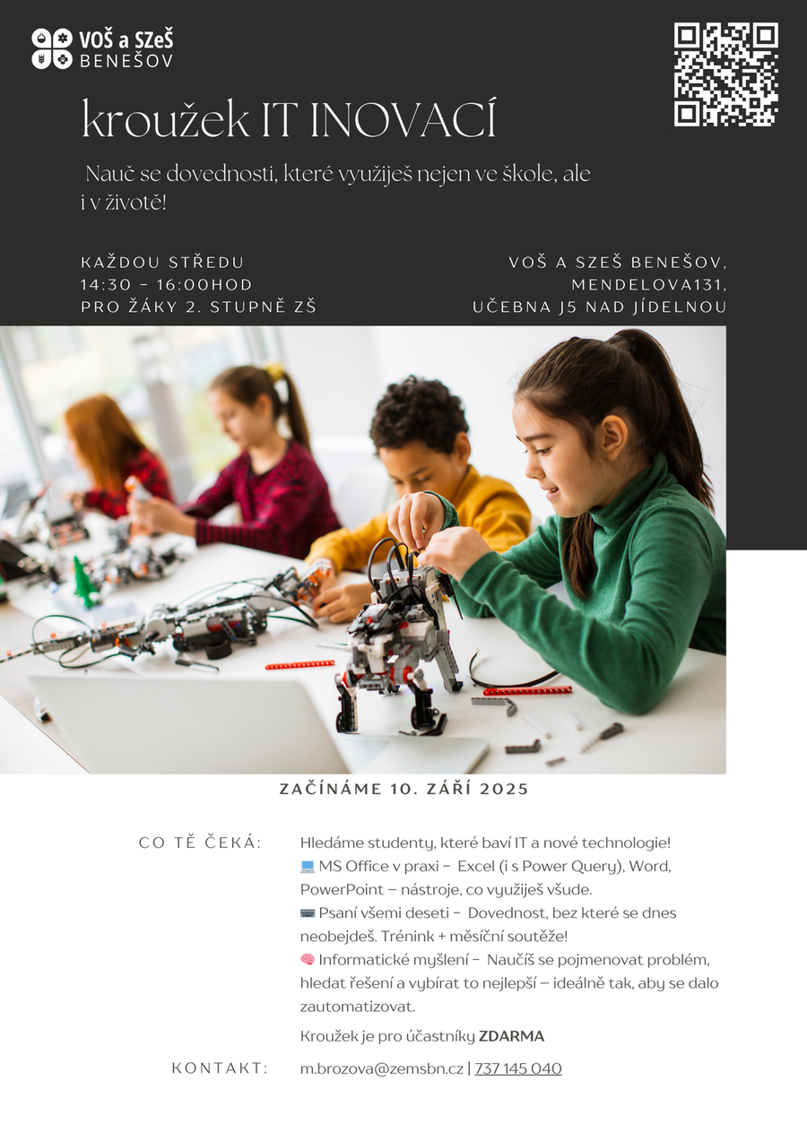 - IT inovací – práce s MS Office, psaní všemi deseti, informatické myšlení a moderní technologie.