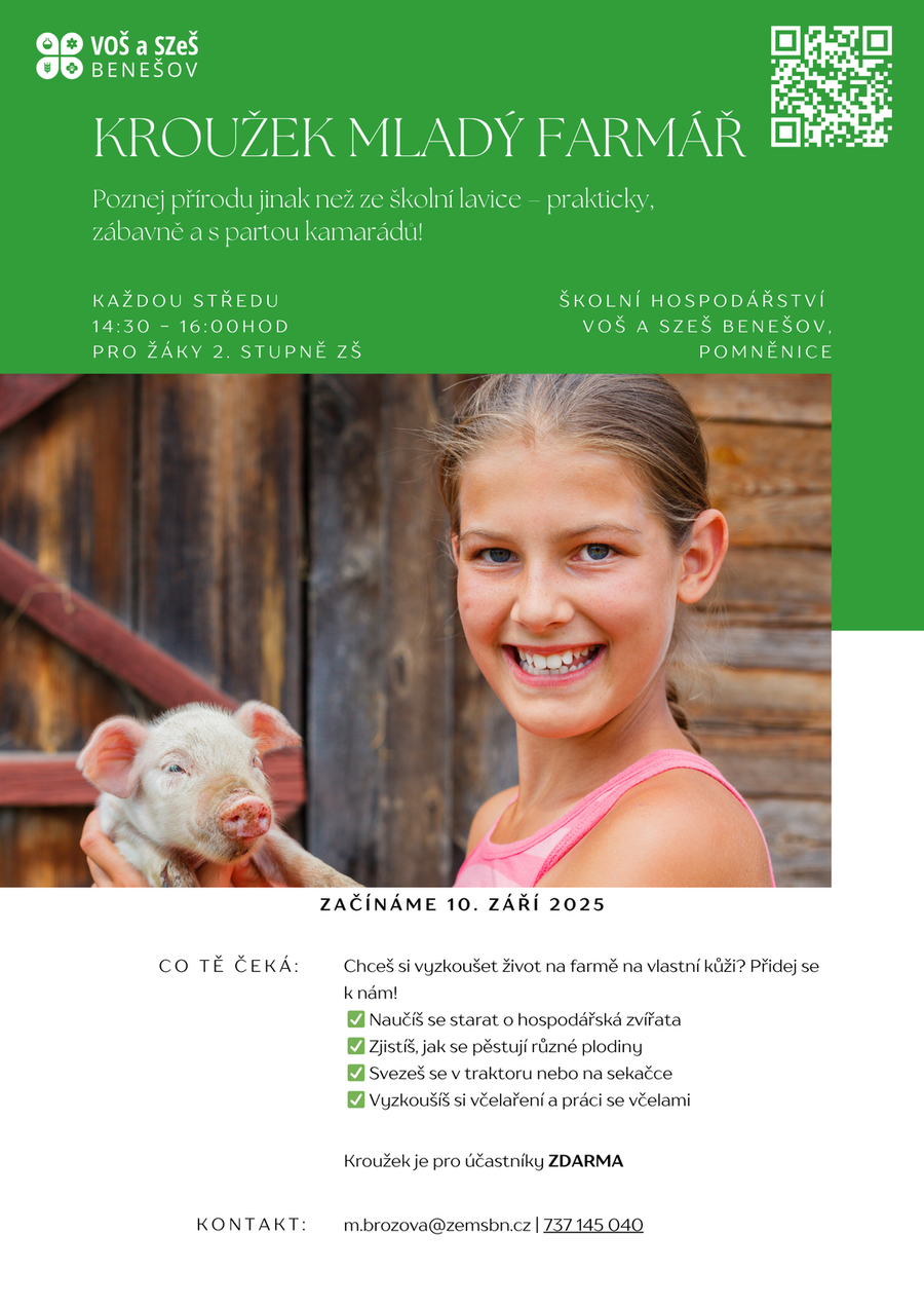 Přihlášky a více informací najdete na webu školy: Kroužky na zemědělce