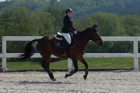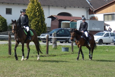 Své první závodní zkušenosti sbíral v hobby soutěžích pětiletý valach Santini v sedle s Helenou Radochlibovou, studentkou druhého ročníku Přírodovědného lycea. Dvojice minulý týden absolvovala první závody v Opřeticích a o víkendu se vydali do Heroutic, kde se jim podařila soutěž do sedmdesáti centimetrů dokončit bez trestných bodů.