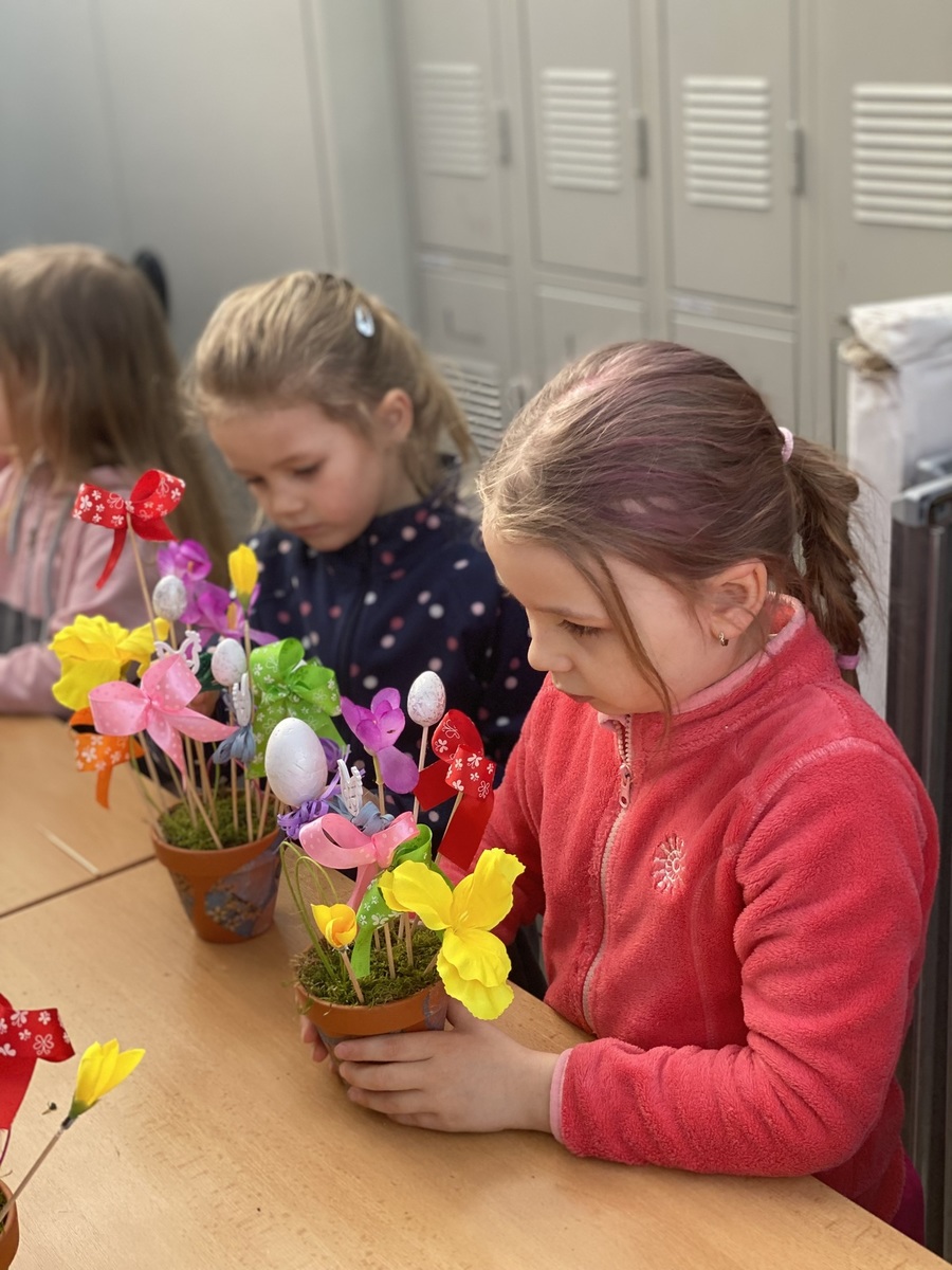 Po krátkém úvodu do květinářského umění jsme začali. Děti si mohly vybrat z pestrobarevných květin, barevných stužek, korálků, a dalších ozdobných prvků. Pro některé z nich to bylo poprvé, co se takto kreativně zapojily, a bylo velmi lehké nechat se strhnout jejich jejich nadšením a radostí z tvoření.