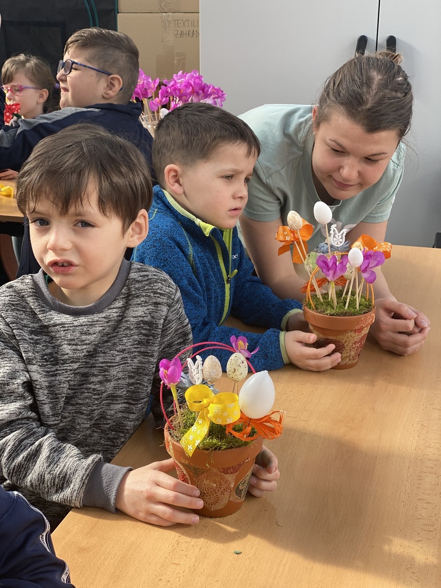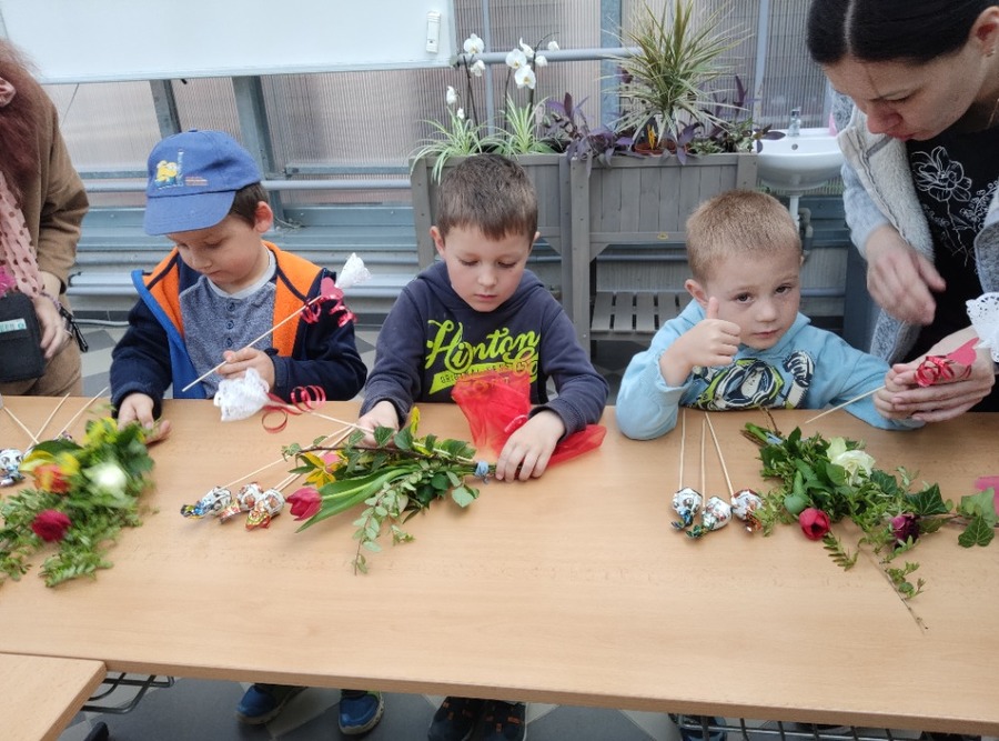 Zatímco děti z dubnové skupiny tvořily krásné velikonoční dekorace, květnoví malí návštěvníci připravovaly něco zvláštního pro své maminky k nadcházejícímu dni matek. Náš tým je u toho rád podporoval a pomáhal s radami a nápady, jak vytvořit ty nejkrásnější květinové dárky.